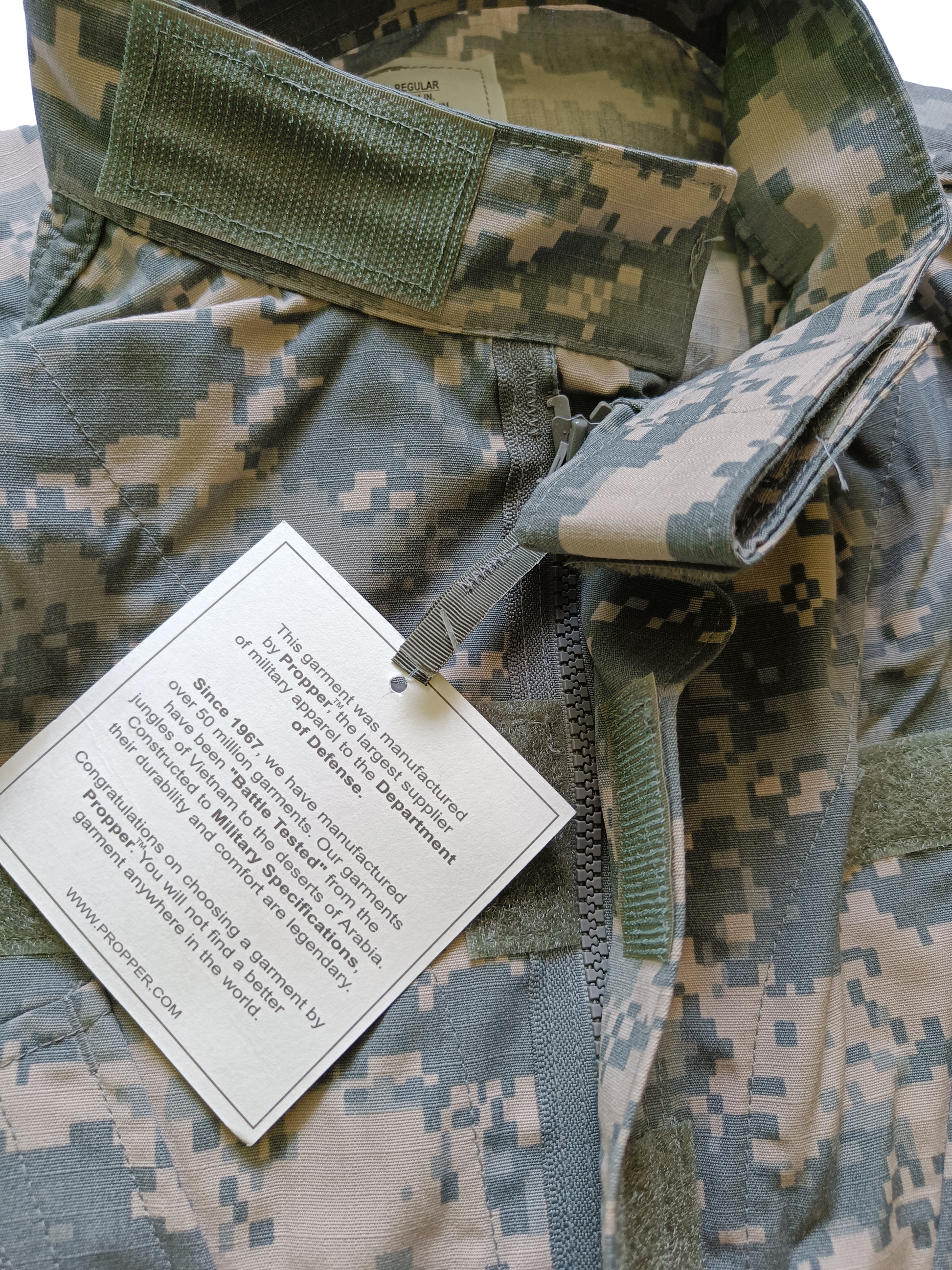 Zatímco většina dostupných blůz na trhu je použitá z armádních přebytků, tyto kusy jsou naprosto nové, stále se štítky, přímo od legendární firmy Propper, jednoho z hlavních dodavatelů pro americkou armádu.