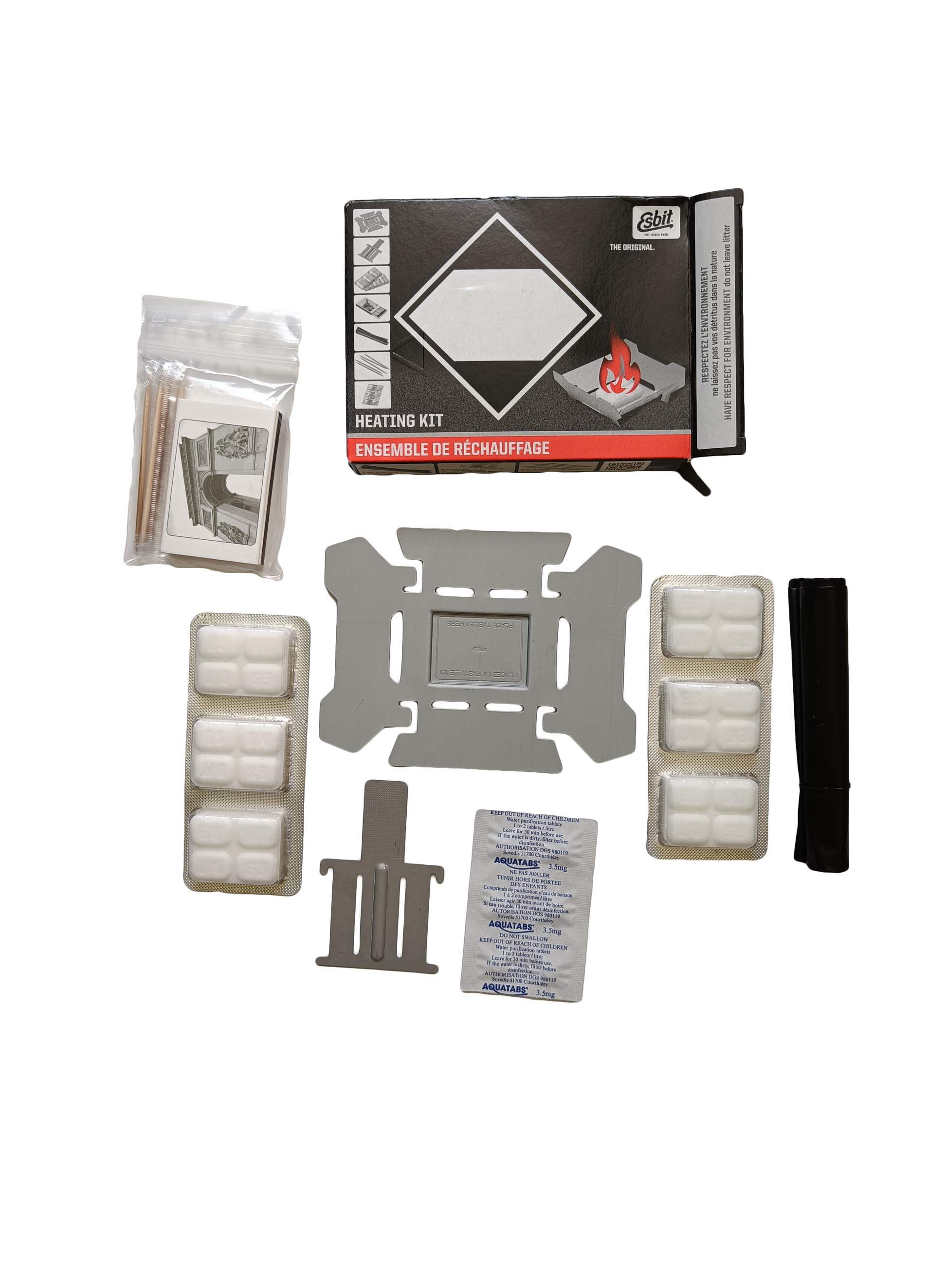 MENU I: Piperade z tuňáka, Pur Hovězí Tortellini, Filety ze sardinek, Přírodní sýr Fondu, Brusinkové snídaňové müsli, Nápoje ke snídani (horká čokoláda, káva, čaj), Isotermický nápoj, Slaný, čokoládový cracker, karamely, nugátové tyčinky, čokoládové tyčinky, sladká sladká tyčinka, sladká čokoládová tyčinka, sladká (ohřívač, lihové tablety, sirky), pytel na odpadky a tablety na dezinfekci vody